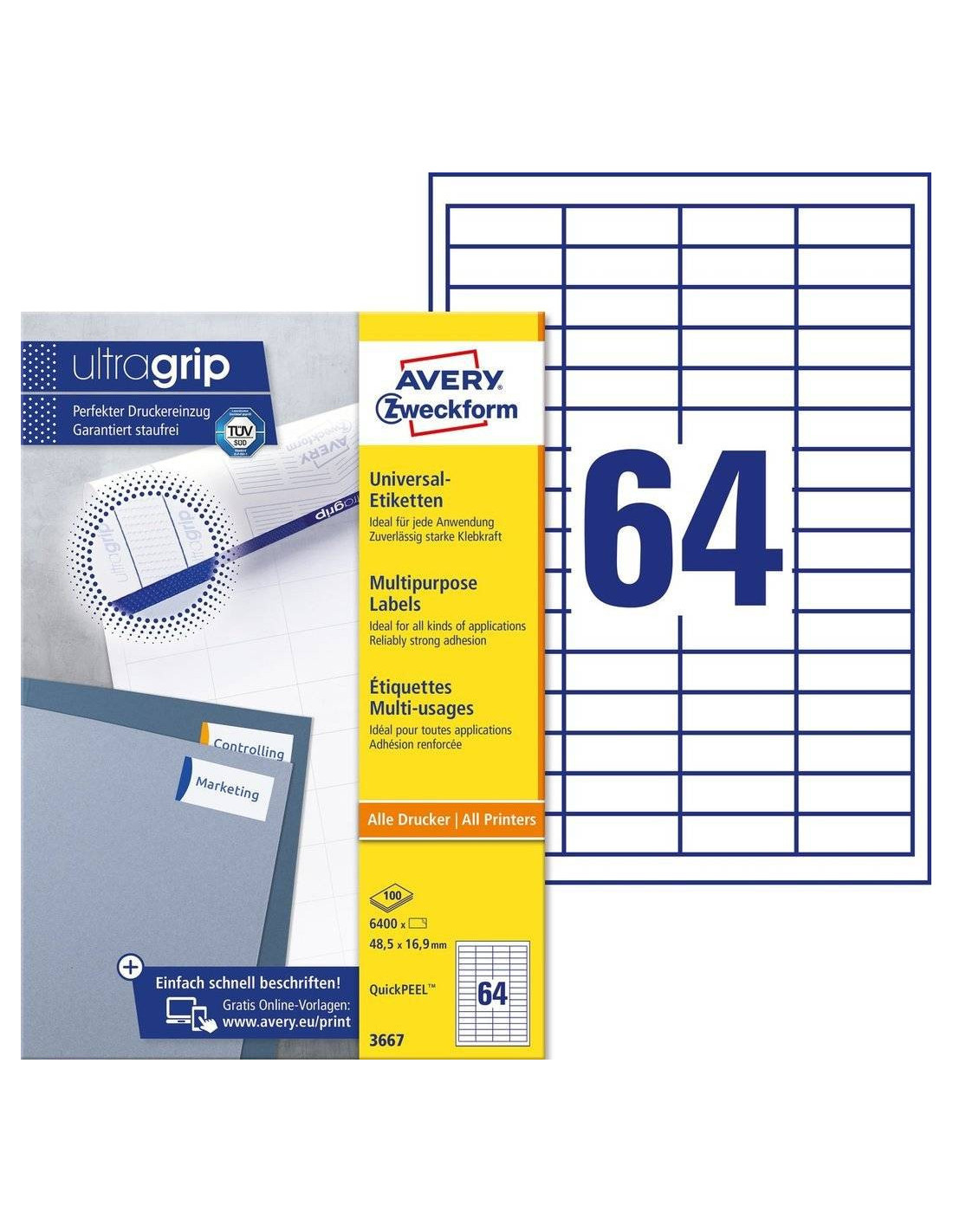 Quickpeel og Ultragrip Universal etiketter, hvide, 48,5 x 16,9 mm - 3667