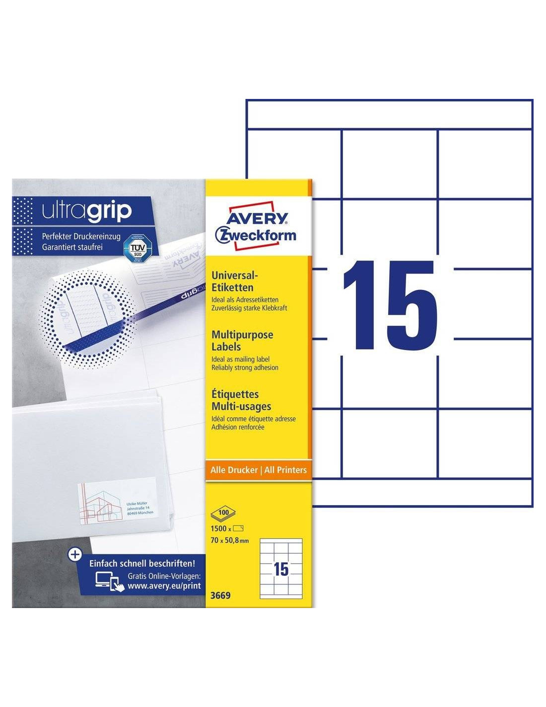 Ultragrip Universal etiketter, hvide, 70 x 50,8 mm - 3669