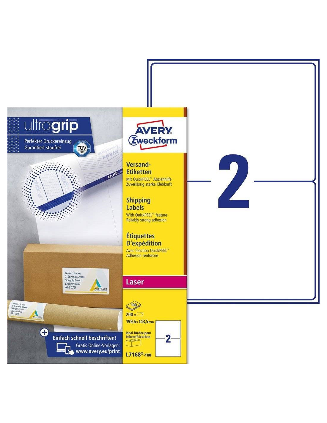Avery Varenummer L7168-100Ultragrip sørger for præcis udskrivning uden papirstop QuickPEEL funktion for nem aftagning og påsætning