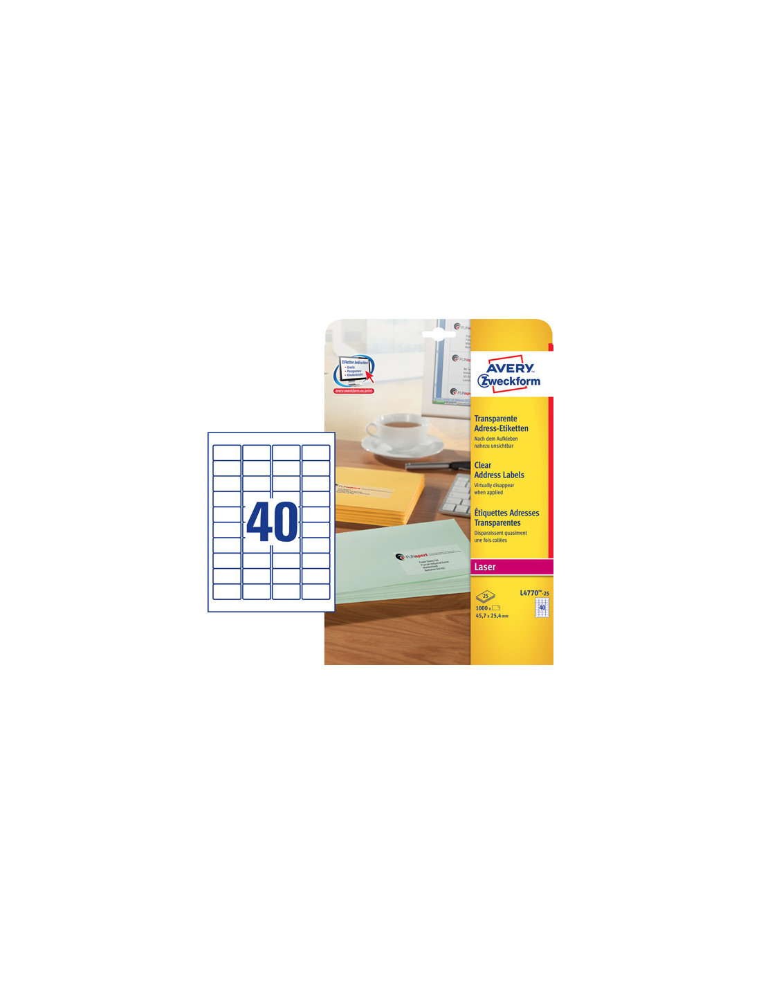 Avery L4770-25 klare Adresse etiketter 40 pr. ark 45.7 x 25.4 25 ark