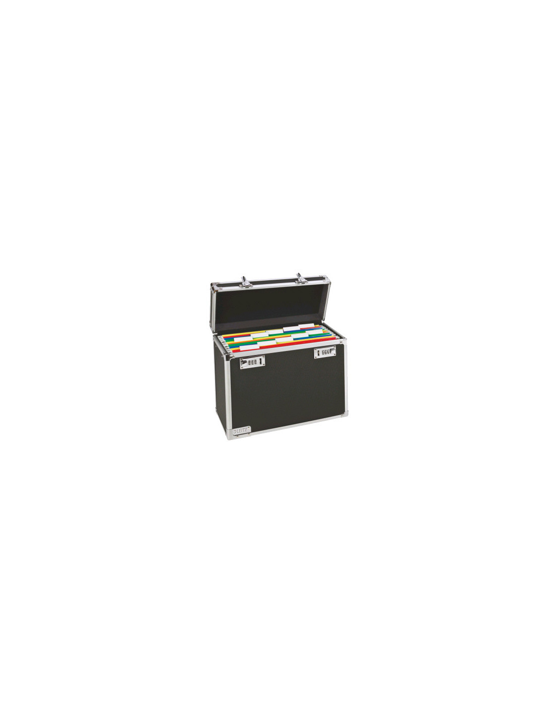 Bærbar, slank profilIndbyggede skinner kan bære op til 20 hængemapper med indhold (hængemapper er ikke inkluderet)Dobbelt kombinationslås som giver øget sikkerhedMetal håndtag placeret på lågetKortholder til navn og adresseMed aluminiumskanter og forstærkede stål hjørnerFarve: sort & krom