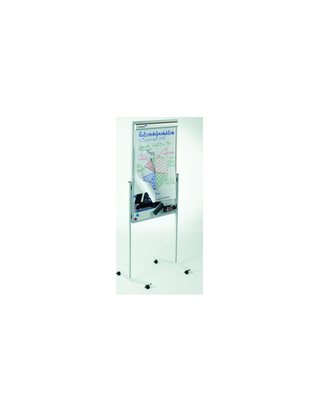 Til præsentation, skærmning og kontorarbejde Multi-purpose: tjener som et whiteboard, Pinboard og flipover i ét! Whiteboard: høj kvalitet, ridsefast emalje overflade Konverterer nemt til flipover ved hjælp af aftagelige magnetiske pad holder Aftagelig magnetisk pad holder Opslagstavle på den modsatte side af boardet Pladsbesparende, kompakt design Med Låsbare hjul Hurtig og nem at samle Let at flytte på grund af dens letvægtskonstruktion Board: H 120 x W 76 cm Samlet størrelse: H 195 x W 85 cm 25 års garanti gælder for emalje whiteboard overflade Leveres komplet med flipover papir pad