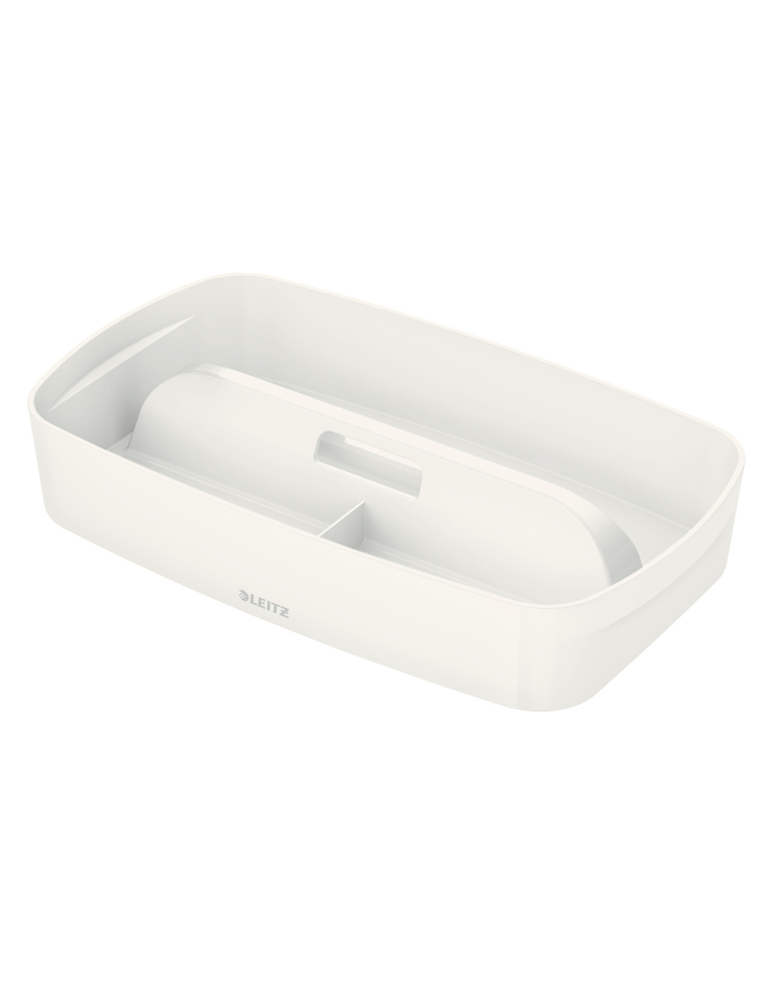 Universelle rum til hurtigt og let overblik og adgang til indhold Med håndtag så let at tage fat i Lavet i robust, ridseafvisende og vandtæt ABS materiale, der giver et premium udseende. BPA fri. Kombineret med Leitz MyBox LArge er det den optimale organiseringsløsning Når bakken bruges indeni boksen, hviler den på topkanten af boksen og opbevaringspladsen bevares nedenunder i boksen Når bakkerne ikke er i brug, kan de stables indeni hinanden for at spare plads Dimensioner 307 x 56 x 181