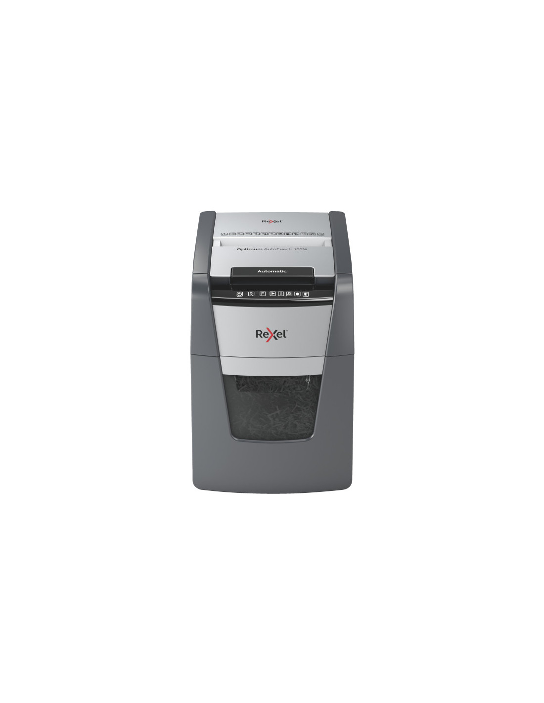 Optimum AutoFeed+ 100M makulator makulerer automatisk op til 100x A4 ark papir (80 g) i en omgang i P-5 (2x15 mm) mikromakuleringsstykker