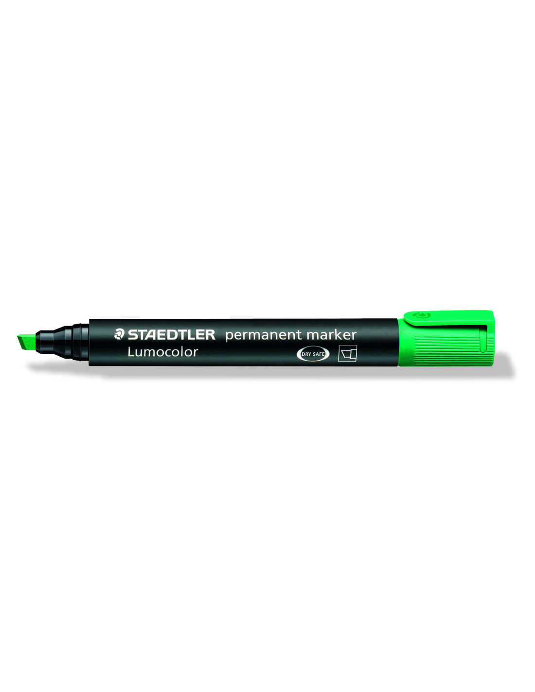 Skrå spids ca. 2-5mm. Smudsafvisende og vandfast og kan anvendes til mærkning og skrivning på stort set alle overflader så som metal, træ, plast, læder, karton. Tørrer på få sekunder, derfor ideel til venstrehåndede brugere. Farve intensiv. Lysægte. PP skaft og hætte sikrer lang levetid. Indeholder DRY SAFE blæk som gør den kan ligge uden hætte i dagevis uden at tørre ind. Genopfyldelig. Grøn. Made in Germany