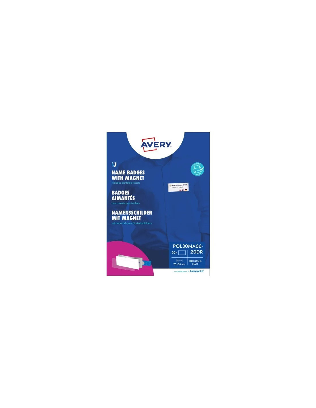 Personale navneskilte Avery POL20MA66-5DR Medarbejderskilte med rustfri stålramme 68x22mm Avery Etiketter 239,00 DKK Lägg till i varukorgen