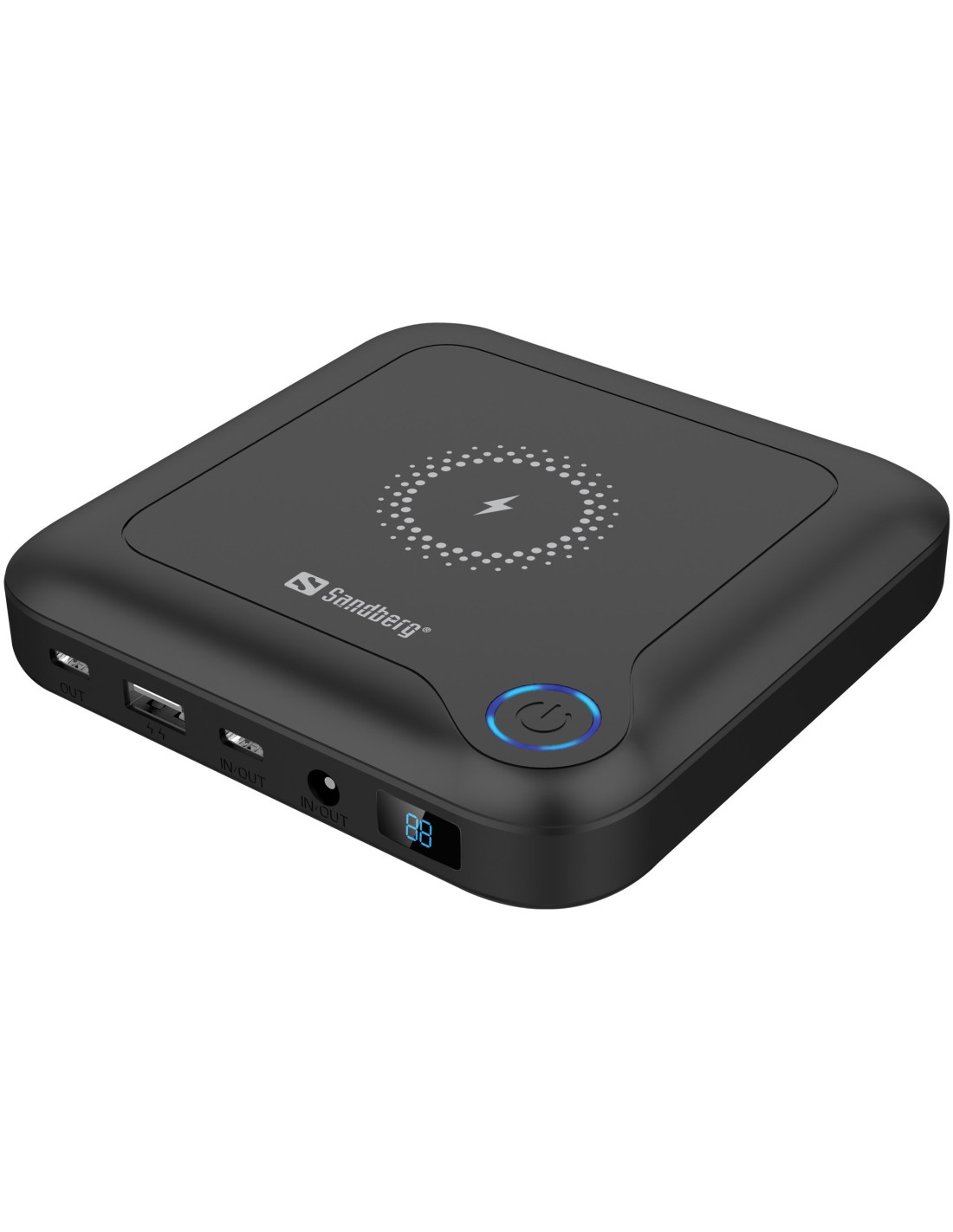 Til alt dit mobile udstyr, også din laptop eller Macbook. Med sit kraftige batteri på 24000 mAh er der strøm nok til mange opladninger af en smartphone eller flere timer ekstra arbejde på laptoppen. Powerbanken genoplades nemt med den medfølgende AC adapter eller fra enhver USB-C oplader på få timer. Med DC udgang og 12 forskellige adaptorer i pakken, samt Quickcharge USB port og hele 2 USB-C porte kan meget forskelligt udstyr lades på maksimal hastighed. Som en ekstra feature er der endda en indbygget wireless fastcharger på toppen af powerbanken. Powerbanken er nem at have med sig i en taske venlig størrelse og med en vægt på kun 0,5 kg.Battery capacity: 24000 mAh (88.8 Wh) DC-port input:12-24V/2A DC-port output: 12V/4A, 16.5V/4A, 20V/4A, 24V/3.5A USB-C PD input: 5V/3A, 9V/3A, 12V/3A, 15V/3A, 20V/3A USB-C PD output:5V/3A, 9V/3A, 12V/3A,15V/3A, 20V/3A USB-A output:4.5V/5A, 5V/4.5A, 9V/2A, 12V/1.5A USB-C (2) output:5V/3A, 9V/3A, 12V/2.25A Wireless charger max : 10W