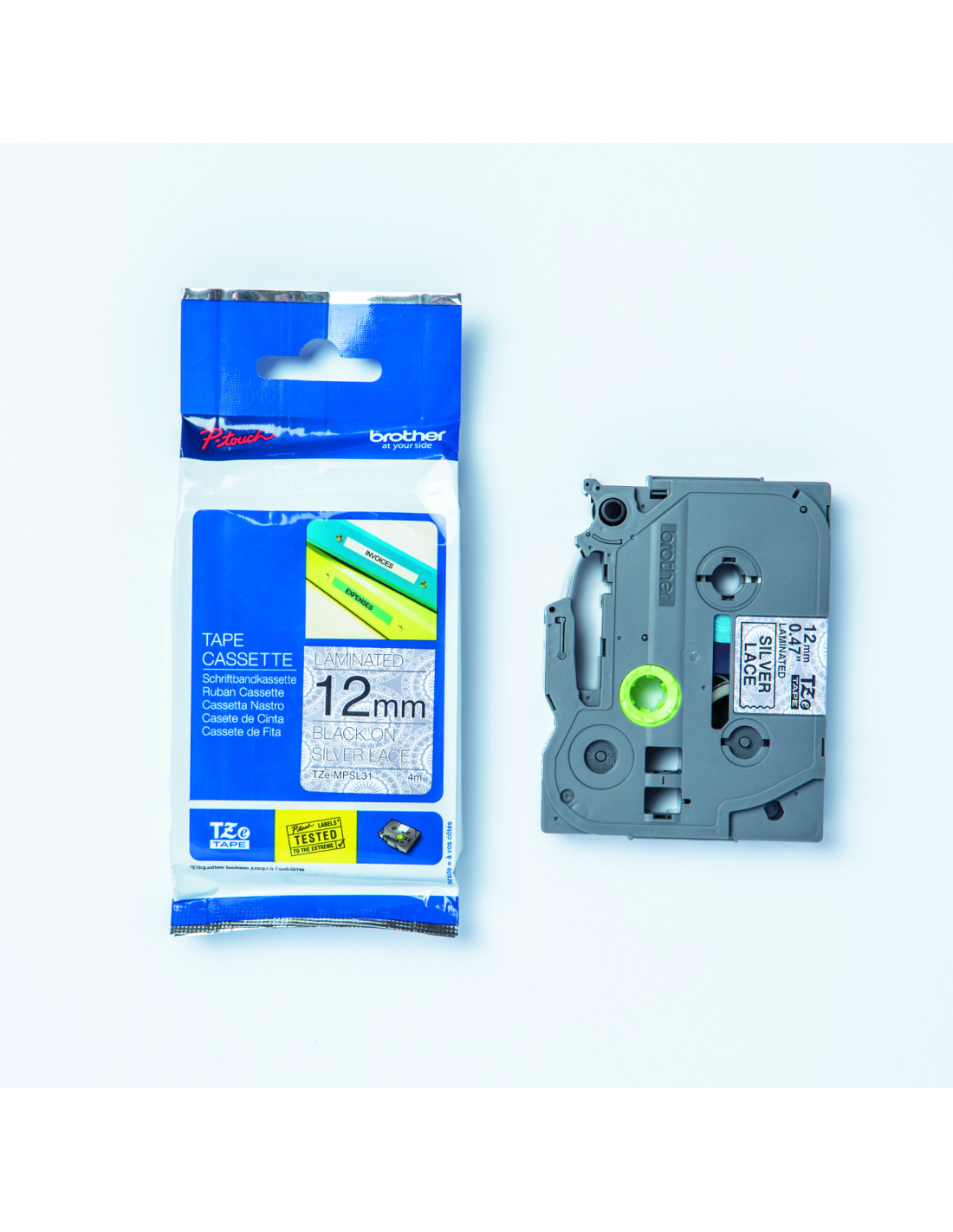 Sort tekst på sølv blonde tape, Brother TZEMPSL31